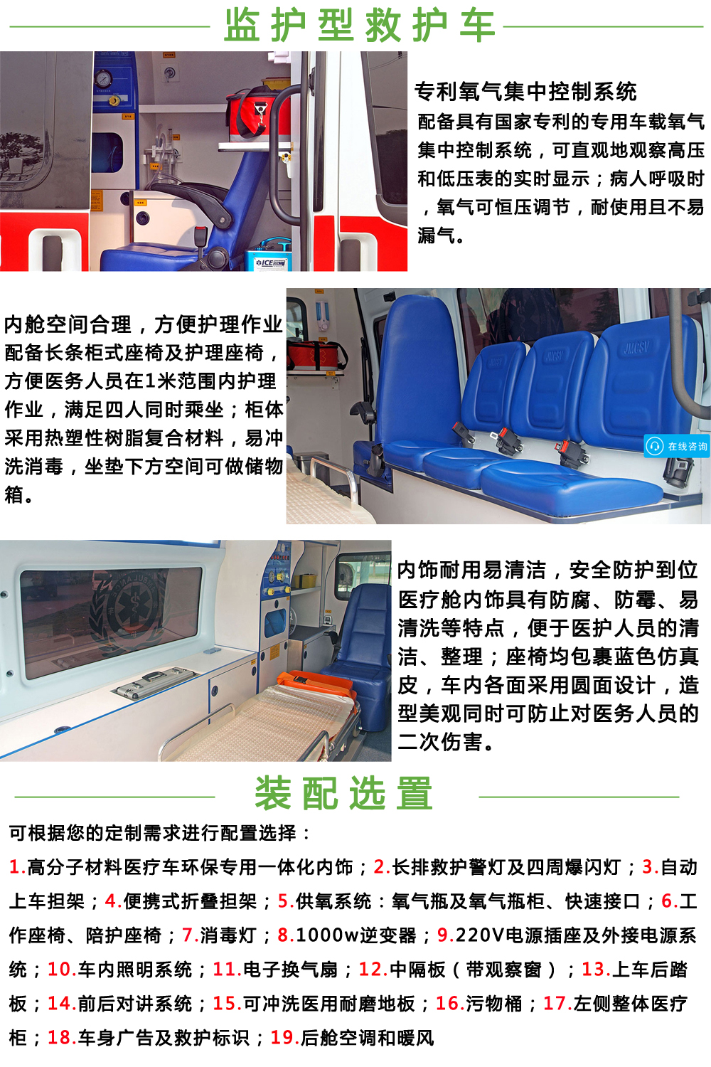 備注 | 該車配備醫(yī)療器械柜、氧氣瓶、擔(dān)架、消毒燈救護(hù)專用設(shè)備;隨底盤選裝低頂時(shí)整車高(mm):2200,選裝兩側(cè)報(bào)閃燈,選裝前額位置報(bào)**器時(shí)整車高(mm):2407; ABS系統(tǒng)**器型號(hào):EV5051,生產(chǎn)廠:博世汽車部件(蘇州)有限公司,選用輪胎:215/75R16LT,層級(jí):8PR,10PR,12PR。 | ||