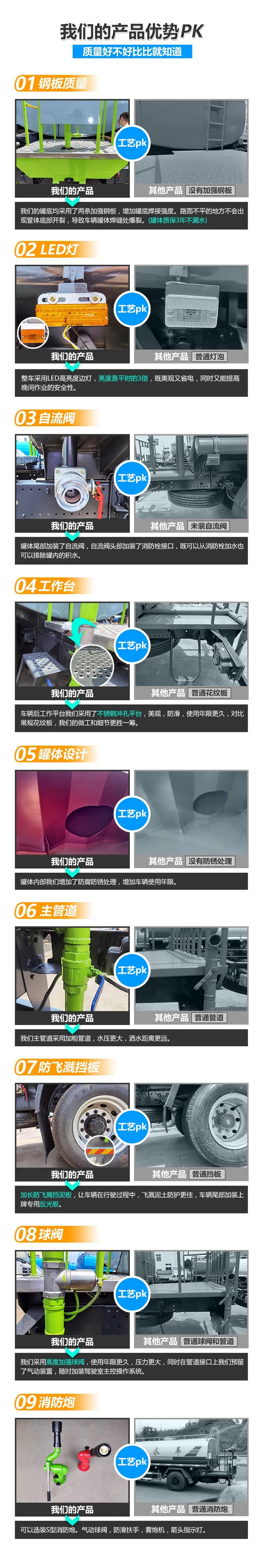 其他 | 1、該車(chē)僅選用3308mm軸距,罐體有效容積為4.04立方米,罐體尺寸為(mm):3400×1600×1100,3300×1600×1100。2、防護(hù)材料:Q235B碳鋼,連接方式:左右側(cè)面及后下部防護(hù)均采用焊接連接,后部防護(hù)斷面尺寸(mm):120×50,后部防護(hù)離地高度(mm):430。3、ABS型號(hào)/廠家:ABS/ASR-12V-4S/4M/襄陽(yáng)東風(fēng)隆誠(chéng)機(jī)械有限責(zé)任公司。4、專(zhuān)用裝置:罐體,主要用于路面灑水及園林綠化。5、隨底盤(pán)選裝駕駛室。 | ||